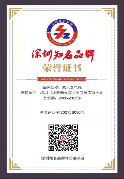 成立近40周年的成天泰,秉承“连接城市电能,守护美好生活”的企业使命,不断创新技术,凭借耐用的电线电缆品质,撑起了对城市美好生活的守护,与华为、腾讯、创维、飞亚达等知名品牌一起,多次荣获“深圳知名品牌”称号,成为创造深圳质量的主力军、企业建设大军的第一方队。同时,成天泰也是深圳首家在电线电缆行业中荣获“深圳知名品牌”称号的企业。