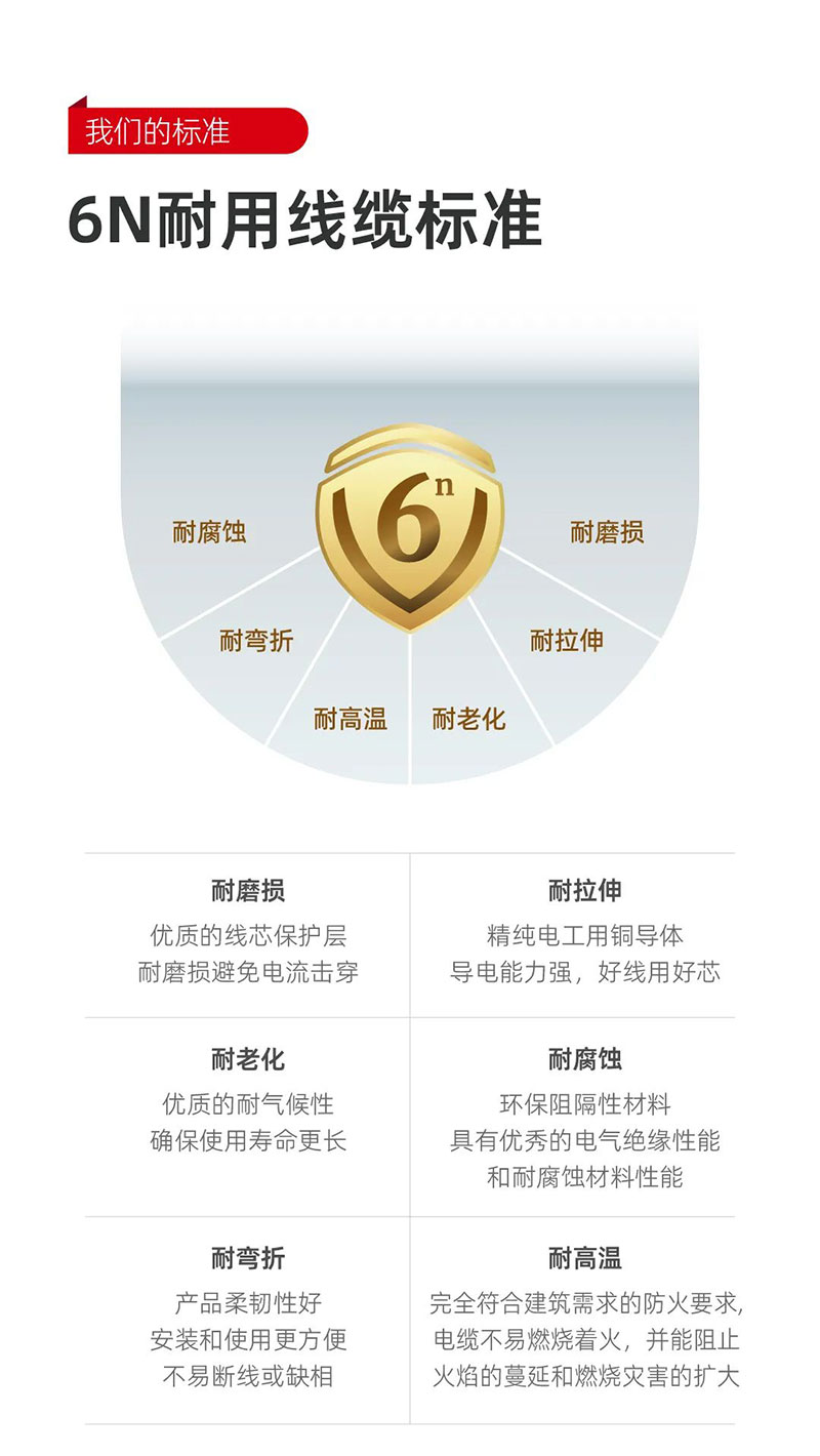 为确保产品质量安全,成天泰建立了专属的研发团队,其核心研发人员均具备行业5年以上工作经验,并协同多家科研院全面开展 “产、学、研、用”的合作,以此获得了数十项发明专利,其主要电线电缆产品种类高达10W+,为不同的客户需求提供了多维度的高品质解决方案,并且,成天泰以耐腐蚀、耐弯折、耐高温、耐老化、耐拉伸、耐磨损的6大产品特性,打造了业内领先的“6N耐用线缆标准”。