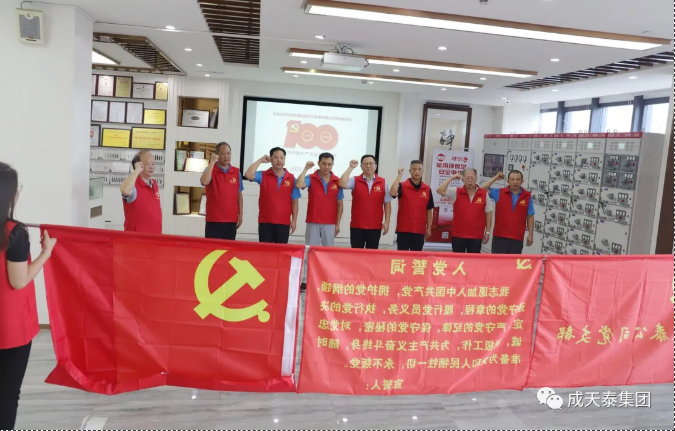 “我志愿加入中国共产党,拥护党的纲领……为共产主义奋斗终身,随时准备为党和人民牺牲一切,永不叛党。”7月1日上午9点,深圳市成天泰电缆党员同志重温入党誓词活动在公司一楼大厅举行,公司党支部书记朱志勇带领党员宣誓。